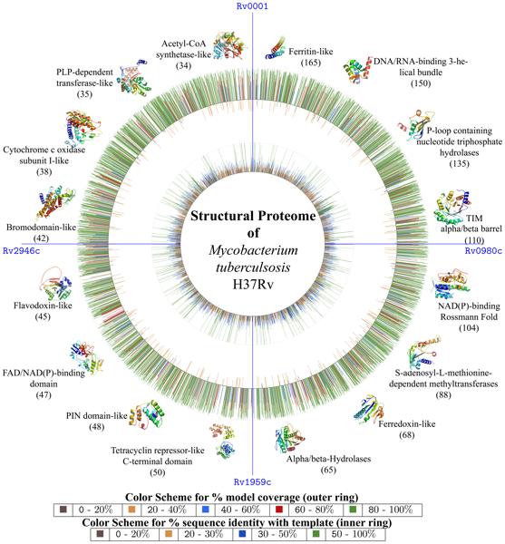 Schematic view of structural annotation of proteins coded by the M. tuberculosis genome: